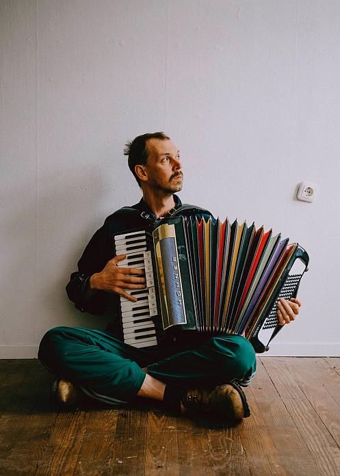 David Bowie auf dem Akkordeon.
